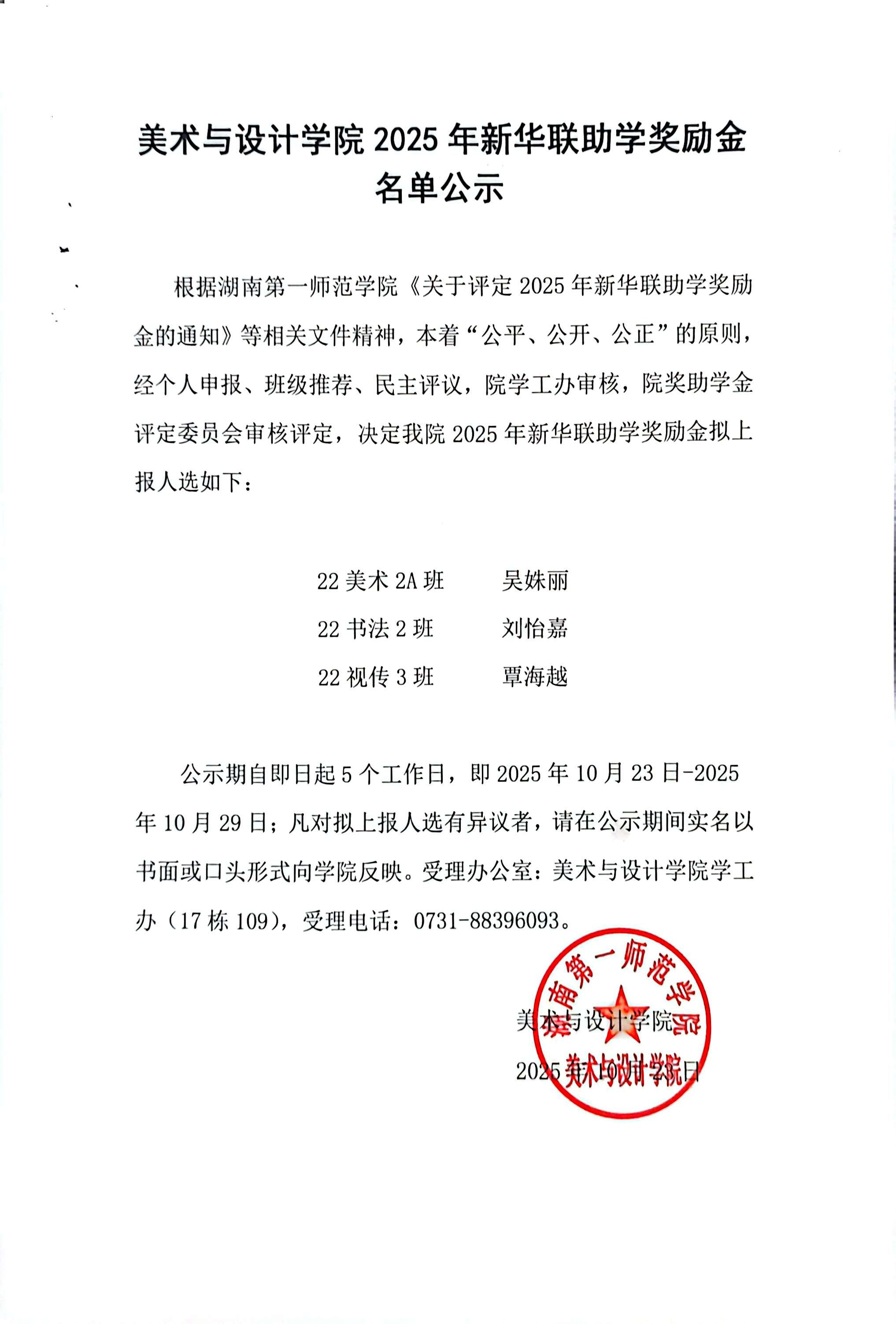 《关于评定2025年新华联助学奖励金的通知》等相关文件精神,本着“公平、公开、公正”的原则,经个人申报、班级推荐、民主评议,院学工办审核,院奖助学金评定委员会审核评定,决定168足球比分