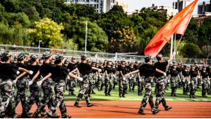 2025级新生组建的两支参训方阵,身着整齐军装,喊着嘹亮的口号,每一步迈得铿锵有力,每一个动作做得标准划一,昂首阔步走过主席台,将168足球比分